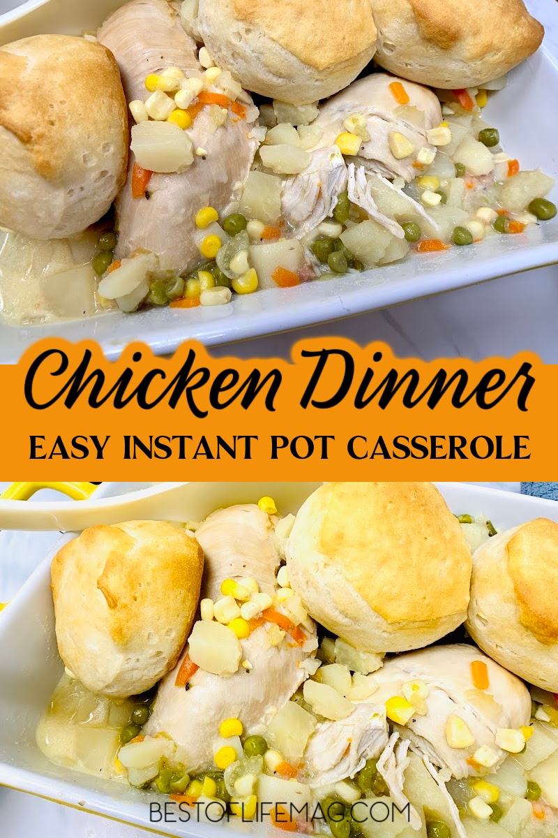 The real beauty of this dish is that it is an entire meal! Chicken pot pie comes with the chicken (main dish), covered in a gravy sauce, veggies (side dish), and of course, biscuits to round out the meal.