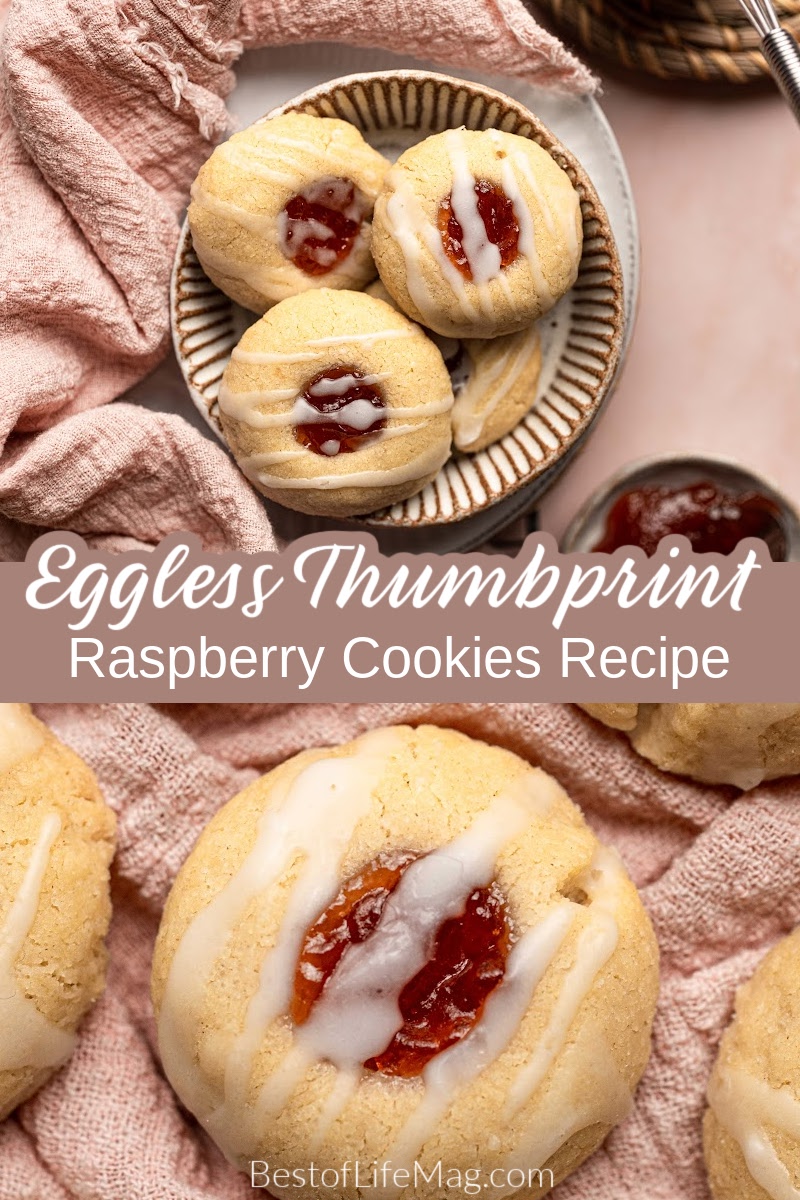 Our thumbprint cookies with icing recipe is highly requested and easy to make! Plus, this is an egg free cookie recipe perfect for the holidays. Thumbprint Cookie Recipe | Easy Cookie Recipe | Dessert Recipe with Raspberries | Holiday Cookie Recipe | Thumbprint Shortbread Cookies | Desserts for a Crowd | Eggless Cookie Recipe | Egg Allergy Cookies